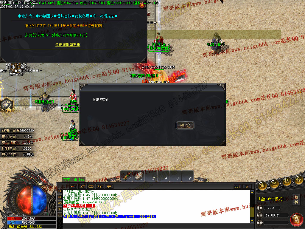 <本服为纯元宝服 地图内无任何暗坑以及消费 就完了 本服无合成 所有装备全靠打 脸白出一切>