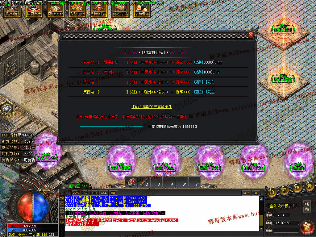 <落地捐献国王+全满神话特殊五格(多余元宝点转生)><→终极靠打>