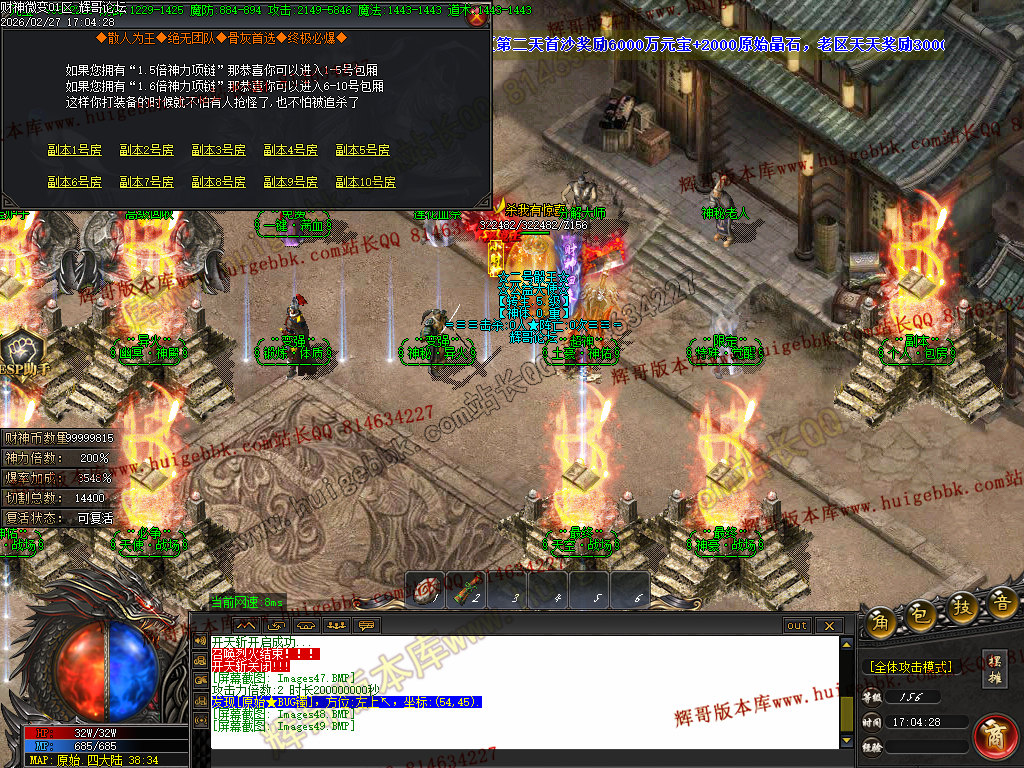 <大陆可进入炎阳神殿.修罗禁地.森林神坛.财神发财.财神魔盒><→终极靠打>