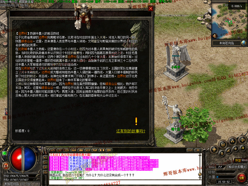 杀猫逐鹿出新村 斩妖除魔入盟重 近观绿涛汇碧海 远眺青山有苍松