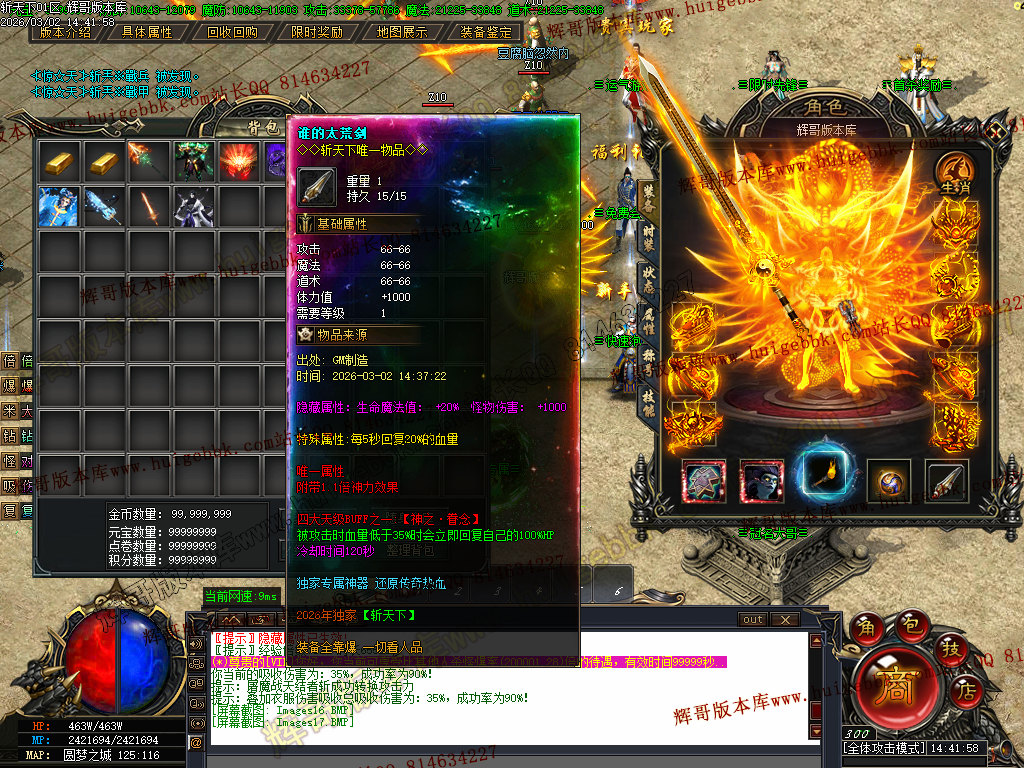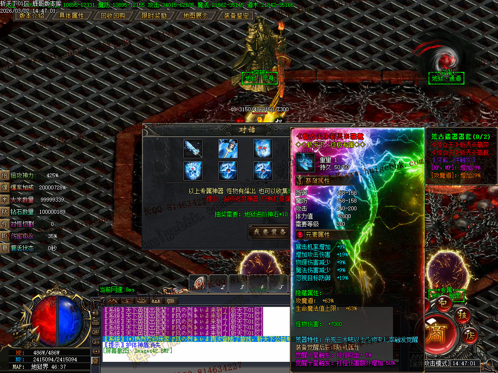 注意:所有装备专属神器 全服所有怪都爆 包括白色垃圾小怪