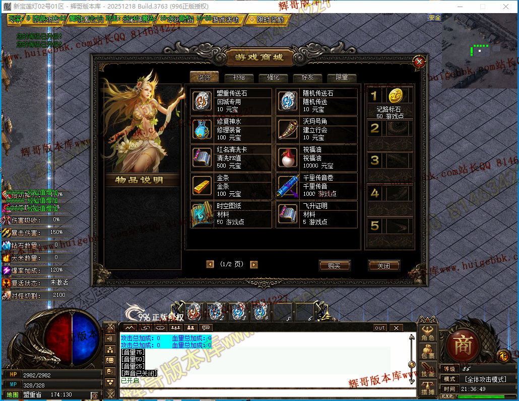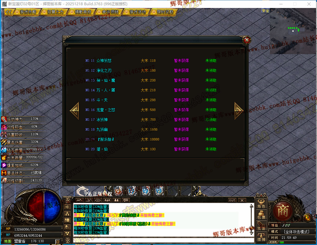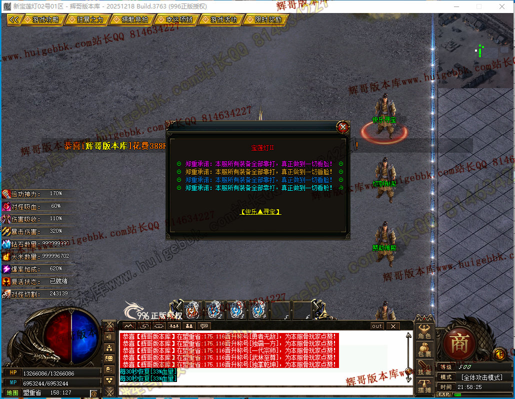 如果发现影响开区的大问题,可联系站长进行免费修复,细节问题自己处理不负责细节问题,