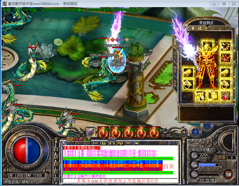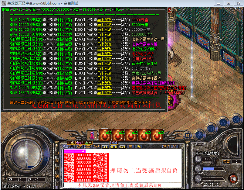 【特色⑤】:第二天晚上拿沙后,新区奖励20亿元宝+皇龙神力项链+2000积分+等级卷,老区奖励10亿元宝+1000积分。