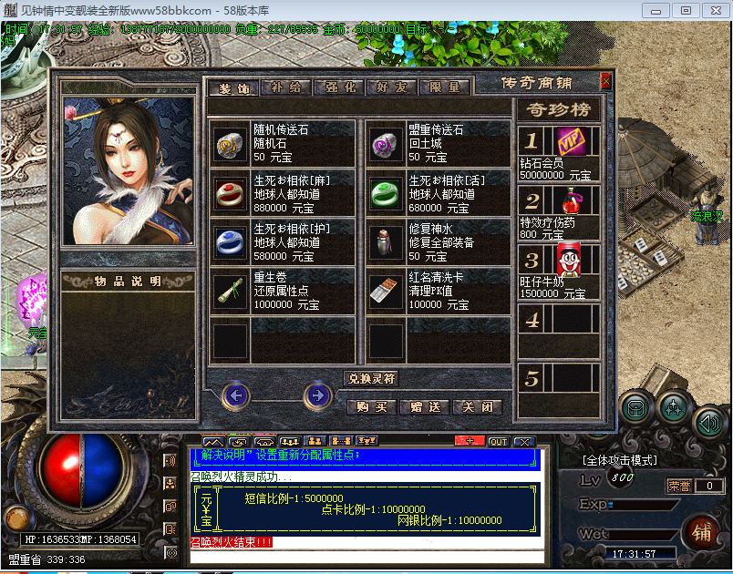 【游戏介绍⑦】 >> >> 本服爆率超高,大小怪都可爆出终极。以激情为本,积累人气为目的!