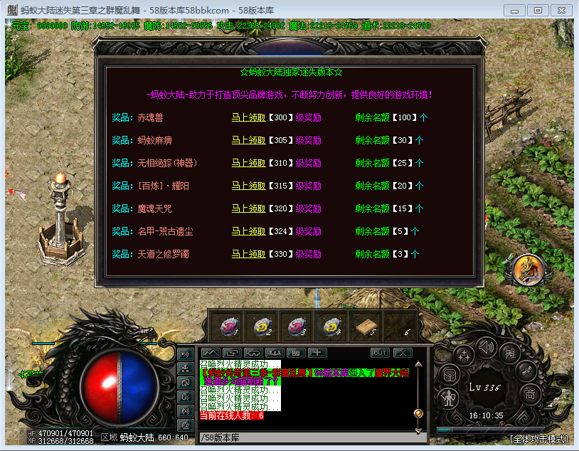 <金币获取>各大BOSS打死后可获得相对于的金币(蚂蚁力量可以兑换金币)