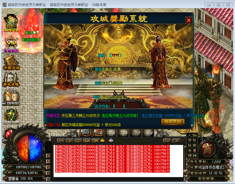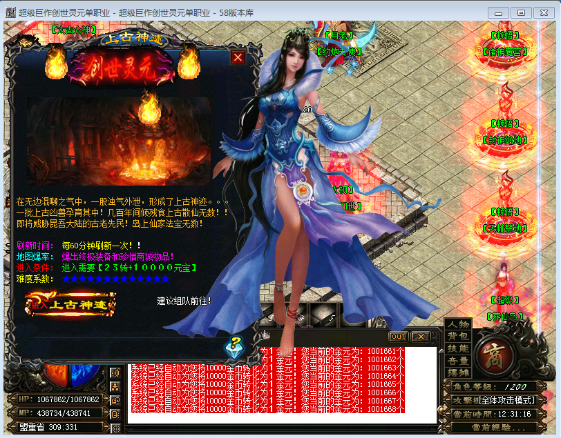 本服所有地图进入都是免费的,且地图丰富!初级地图三个,中等地图三个,高级地图三个,终极地图三个,超级地图三个,神级地图9个!外加【转生】地图12个和紫金地图6个!地图爆率较高,神级地图爆率适中!