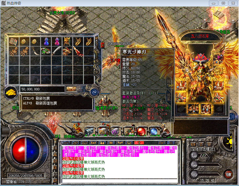 地图介绍:新增数张终极地图.增加BOSS数量(BOSS超多.绝对打不完.只要有时间装备比玩家还猛).进入体验下暴率让你着迷.装备值钱好打极品满地暴