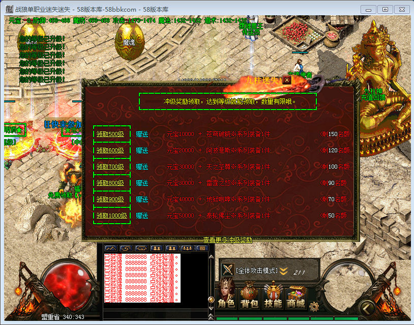【爆率介绍】本服任何地图BOSS击杀都有丰富元宝奖励.从初级到终极地图爆率非常之高.散人不在沉默.
