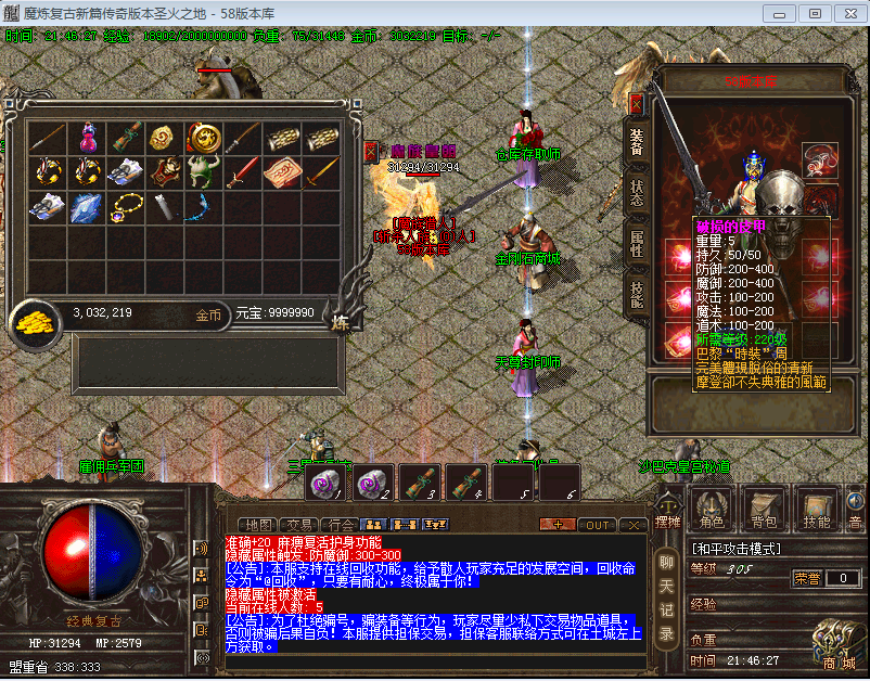02、更新魔楼圣王套装备 心魔套 复古套装;