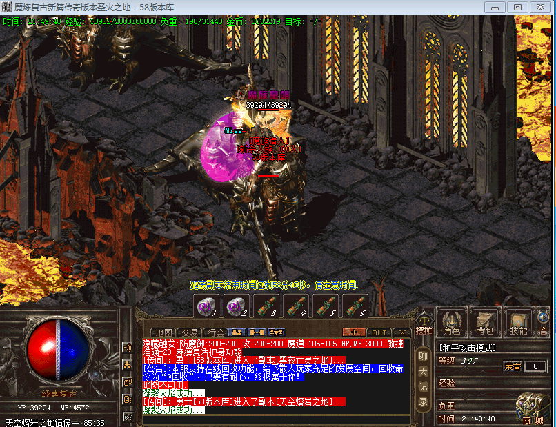 心魔之颠:该地图和贵族地图一样爆率,都是外面地图的双倍爆率,怪物多多,BOSS多多,疯狂多多,一个人别去哦,很危险,团队去吧!!