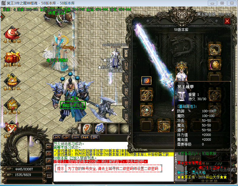 冥王传III 装备更新到了第40套 加了2个大陆 N个地图 时装 等
