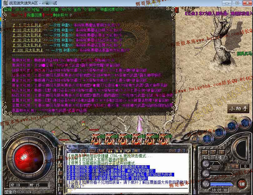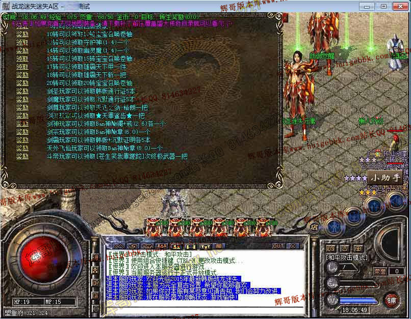 版本介绍: 本F绝对不充钱也能玩起来,而且很好混,转身材料,元宝等等都好打,绝对是不花钱首选迷失!