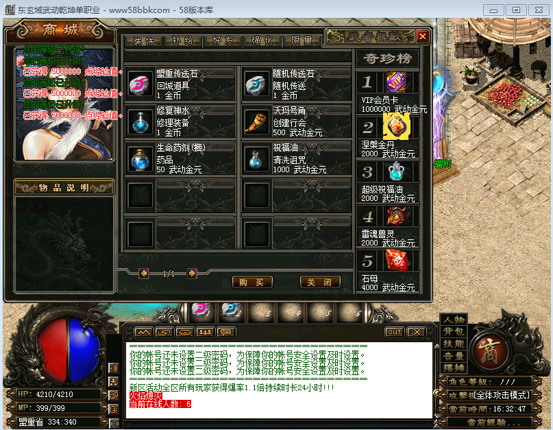 【游戏介绍】:独创打怪模式,全图刷BOSS,调整所有分区爆率,激情耐玩。