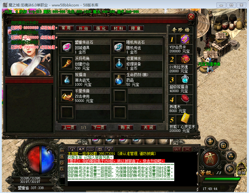 ╔──────────────╗ │≡≡≡≡ 魔之域 ≡≡≡≡ │ ╚──────────────╝ 风云我主沉浮.激情与您共享 ┈┈┈┈┈┈┈┈┈┈┈┈┈┈┈┈ 适度游戏益脑 沉迷游戏伤身 合理安排时间 享受健康生活 ┌─┬─┬─┬─┬─┬─┬─┬─┒ ├┬╆━┷━┷━┷━┷━┷━╅┬┨ ├┴┨ 长期.稳定.开放.激情 ┠┴┨ ├┬┺┯━┯━┯━┯━┯━┯┹┬┨ ┕┷━┷━┷━┷━┷━┷━┷━┷┛ 注意: 本服无Gm模式 注意: 本服无Gm模式 ————————————————【信誉保证】:本服务器公司化运营,绝对长期、公平、公正、稳定,非三天服,是长期骨灰玩家的不二首选!【郑重声明】:版本为独家首创,所有装备全部游戏内爆出,封挂系统万米定制,杜绝外挂,绿色游戏!【游戏线路】:千兆双线、采用多机负载技术、外加盾机防护、电信和网通都不卡!多线路IP、如电1进入不了选择电2进入【开区时间】:每天[09:30][12:30][15:30][18:30][21:30]区区重金广告 ,保证人气火爆。多战同步开区更新,每日万米广告【装备次序】:白→蓝→绿→紫→粉→红→橙→黄→特殊单件等、每种颜色装备都有等级划分,四个等级(属性牛B)【元宝比例】:元宝1:10000 点卡1:19000 网银1:20000,幻世币网银1:200(无比例;无待遇;无家族)【最新地图】:夺宝奇兵、全服跑酷、刺杀剑客、行会争霸、人品比拼、新区怪物三倍攻城活动等【最新调试】:怪物防御调低、怪物攻击调低、爆率调高、真正适合散人,长期方可终极【攻沙奖励】:新区第三天下午拿沙、奖励300万元宝,2万幻世币!