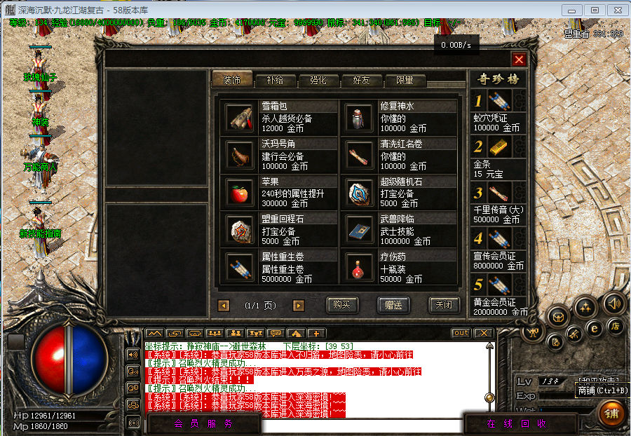 圣霸微变传奇版本-赤炎龙域-四象神殿-黑暗沼泽-荒古迷宫 健康游戏忠告 抵制不良游戏 拒绝盗版游戏 注意自身保护 谨防受骗上当 适度游戏益脑 沉迷游戏伤身 合理安排时间 享受健康生活 热血传奇管理员【本服特色】本服属于微变版本,属性经过严格测试,绝不会出现秒杀的情况!【本服特色】无任何充值回馈,元宝装备保值!散人可以赚钱!【本服特色】本登陆器采用最新微端(边玩边自动更新),无需下补丁也能尽情享受传奇乐趣!介绍① >>免费闭关120级.绿色微变不变态,无秒杀长久耐玩服,三职业全面平衡!介绍② >>本服所有一切靠打,无合成,包括终极一律怪物爆和活动获得,毫无保留!介绍③ >>道士强化70级召范式80级召炽焰90级召邪魔100级召暴怒110级召霸王!介绍④ >>回收系统强大,进入地图不需要等级!只需要回收活跃度!介绍⑤ >>神将系统,回收装备可获得神将点,可兑换神将,神将可打怪可合体!介绍⑥ >>BUFF玉佩系统,十大玉佩附带不同BUFF属性,增加游戏乐趣!!介绍⑦ >>战魂塔系统,使用战魂钥匙挑战战魂塔,可翻黄金卡牌,可获得所有装备!介绍⑧ >>金身系统,军团系统,爆率镶嵌,黄金武器各种独家功能等待你的体验!
