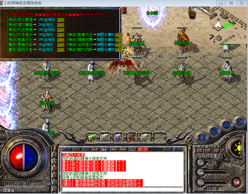 【版本说明】: 2016跨年全新巨作倍攻变态合击【邪神合击】!【游戏线路】:[VIP双线]电信+网通+ 铁通+千兆宽带,不卡刀,不卡位 [多台服务器运行]----保证游戏流畅!【充值比例】: 元宝比例1:300W 点卡网银电话卡赠送100%【版本特色】: 倾一世才华打造独家变态合击版本,欢迎各位铁杆粉继续追服.....【游戏介绍】:无家族 无待遇 无比例 长期公平公正稳定开放 纯散人 级好升 真激情 装备好打不花钱一样爽!【游戏介绍】: 不变态不秒杀,绝非快餐服,装备属性经过我们严格测试才开区,绝对不存在秒杀现象【攻沙介绍】: 开区第三天晚8点拿沙奖励米,激情不断奖励不断。【本服宗旨】: 封死外挂和加速 装备好打,等级好升,不充钱照样混的很好!人气火爆,区区爆满,重金广告,长期稳定!【新手攻略】:不充钱的玩家先泡点,领取升级奖励后去土城外面的地图,打一套基础装备后就可以去时空地图打了【新手攻略】:土豪玩家充钱后先领取回馈,然后领取赞助,泡点满级后,直接下高级地图打装备 【新手攻略】:本服活动BOSS爆率超高,建议活动BOSS不要错过