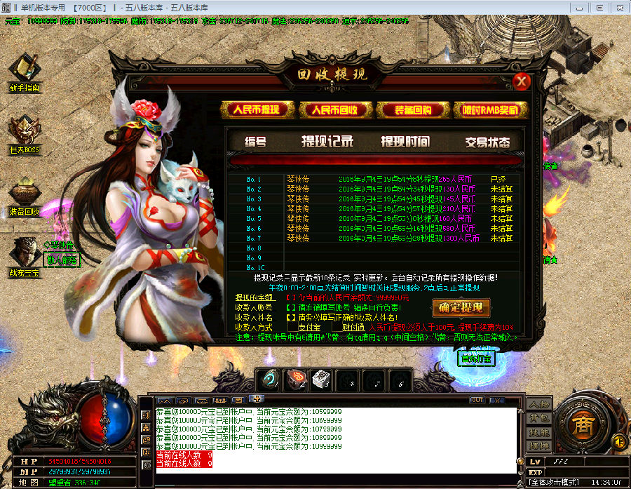 【游戏公告】:本服绝无比例,无待遇,充值一律走网站。