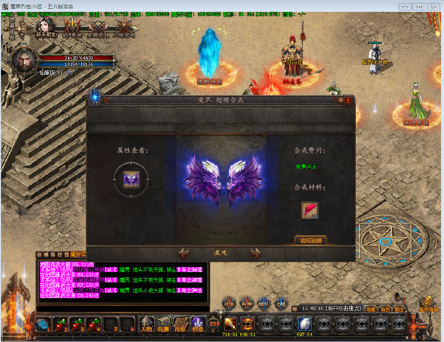 ⒊ 在初级地图打到一些材料,可以拿到土城来免费合成 神兵 翅膀 法宝 披风..这些都是PK或打怪必不可少的。(高阶特殊所需材料甚多.低级材料也值钱)