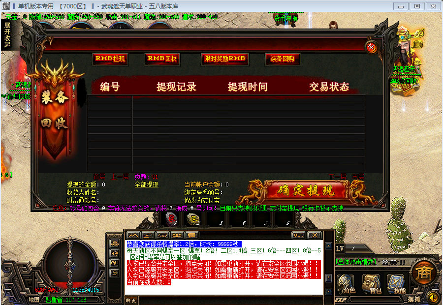 【版本公告】:官方回收装备,特殊神技,特殊物品装备无限保值。