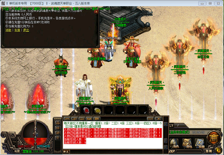 【版本公告】:元宝1米=2500,武魂币1米=25,网银额外赠送100%。