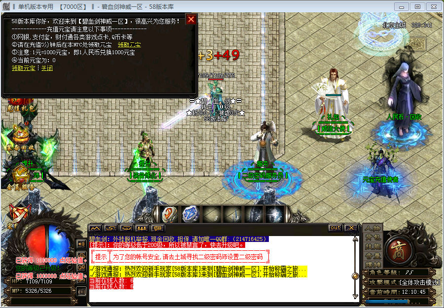 >>【游戏攻略】:元宝比例:1:1000,网银赠送100%,点卡赠送80%!