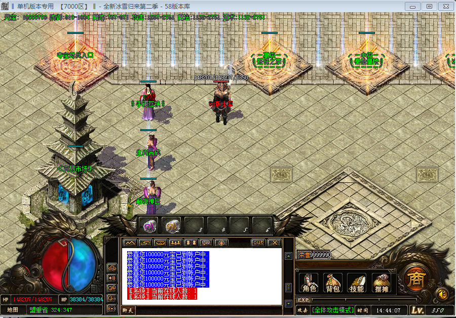 4、新增冰雪神秘新世界,里面有暗之老怪10只,起源天尊1只,起源天尊必爆上古、起源装备。盘古天尊必爆盘古。