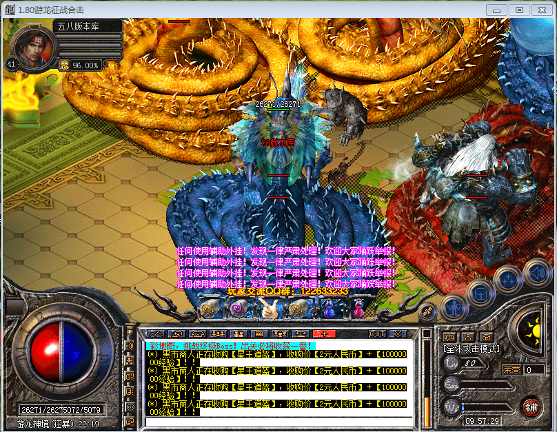 【游龙地宫】新增游龙地宫,进入此地图可以召唤,全服所有BOSS,全BOSS版永远打不完