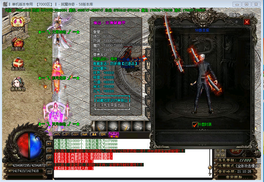【弑魔独家武侠单职业】 ----------------------------- 简 单 游 戏 快 乐 生 活 一切尽在弑魔传奇 版本唯一作者:许先生制作 【盗版 可耻】 【新闻】创新玩法,不同于任何单职业!引领单职业最潮流【新闻】无充值回馈.礼包.冲值奖励.所有装备全部靠打.真正为散人打造.【新闻】 彻底封杀外挂。所有装备爆出,版本定时更新, 长期耐玩【新闻】所有地图免费进入,所有装备0级佩戴,全图BOSS,千件神器【新闻】 所有BOSS都爆终极,散人只要你有时间保证日赚千米以上!【新闻】官方回收装备,特殊神技,特殊物品装备无限保值。合区不变【新闻】金-币比例1:10万,弑魔币1:1000(网银送100%)