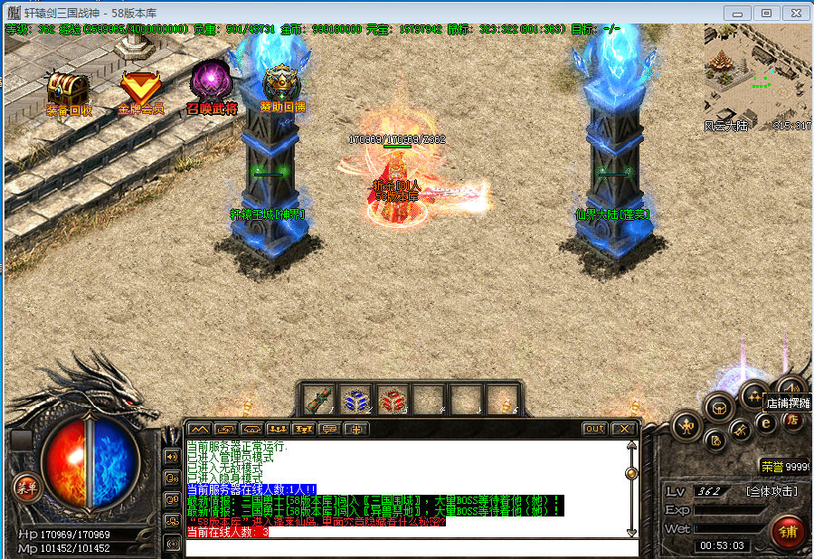 【版本说明】: 本版本为轩辕剑战神独家版本,所有装备真实可爆,无限体验游戏乐趣,一个月一次更新!【充值比例】: 金-币比例:1:10000,网银统一赠送100%,多充多送,公平公正!【游戏介绍】: 本服所有装备一切都可爆出,所有BOSS均有终极爆率,屌丝也可以逆袭。【游戏介绍】: 长期运营封死外挂,还玩家一片净土,让您感受到什么才叫游戏!【游戏介绍】: 长期运营封死外挂,还玩家一片净土,让您感受到什么才叫游戏!【游戏介绍】: 长期运营封死外挂,还玩家一片净土,让您感受到什么才叫游戏!【增界说明】: 本服分为三个陆。无任何无用地图。顶阶神器可附魔强化,每一阶有专属打宝地图。【职业介绍】:本服三职业平衡,增强道师宝宝威力,法师独有练级优势,真正强化道法群攻技能。【贵族介绍】:冲级奖励送送送。散人一样可以通过自己的努力证明自己的实力。【贵族地图】:全新超大型会员地图,无限BOSS等你来挑战,给散人一个发展的平台。【怪物介绍】: 本服BOSS多多。一切从细节出发。满足你的视觉享受,技能专爆,人品爆发一本书发家致富!【攻沙奖励】: 本服开区第三天攻城,首任沙城主奖励天道丹*5,金-币3000000!以及沙城专属地图!【GM 声明】: 本服持续更新。公司运营。长久稳定开放。每星期更新BUG,一个月一次游戏创新!【GM 声明】: 本服为无GM模式,再三声明请勿相信下载区的任何评论!以防上当受骗!