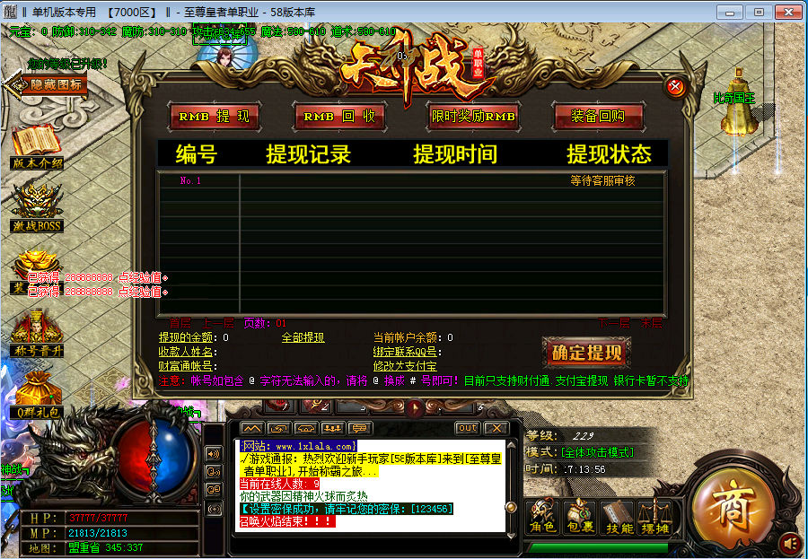 【公告】散人日赚2000+,老板日赚5000+人人玩得起 人人玩的爽至尊皇者-授权单职业