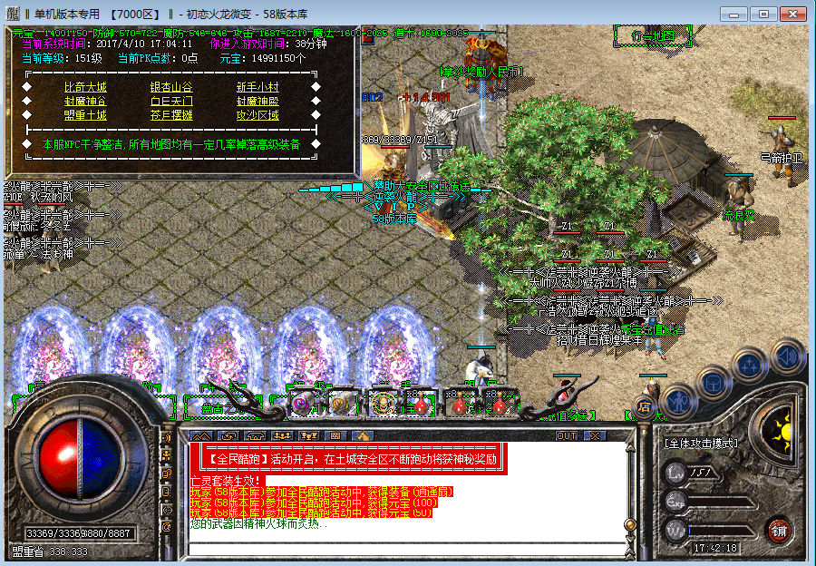 版本介绍每日多区开放 区区重金广告推广 人气火爆 激情无限 独家火龙团队公司巨作元宝比例元宝比例1:2000网银赠送100%,点卡赠送90%,多充多送,测试充值赠送20%攻沙奖励新区开放第二天攻沙,奖励元宝300W老区奖励100W!激情无限封杀外挂本服使用定制版云端封挂登陆器,封杀一切加速,脱机外挂,还原绿色游戏游戏介绍PK绝不秒人,打BOSS装备爆满屏,活动贼多!散人绝对无敌。 3游戏介绍本服专为纯散人打造,进服体验,半年不用在找服了,绝对长期稳定公平。
