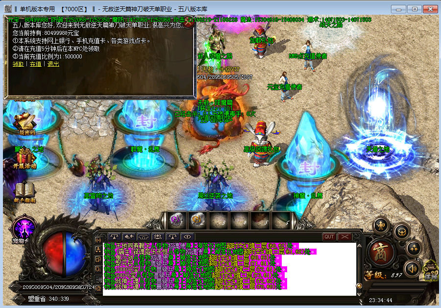 元宝充值比例:1:50W元宝+4000无赦币、网银多送100%