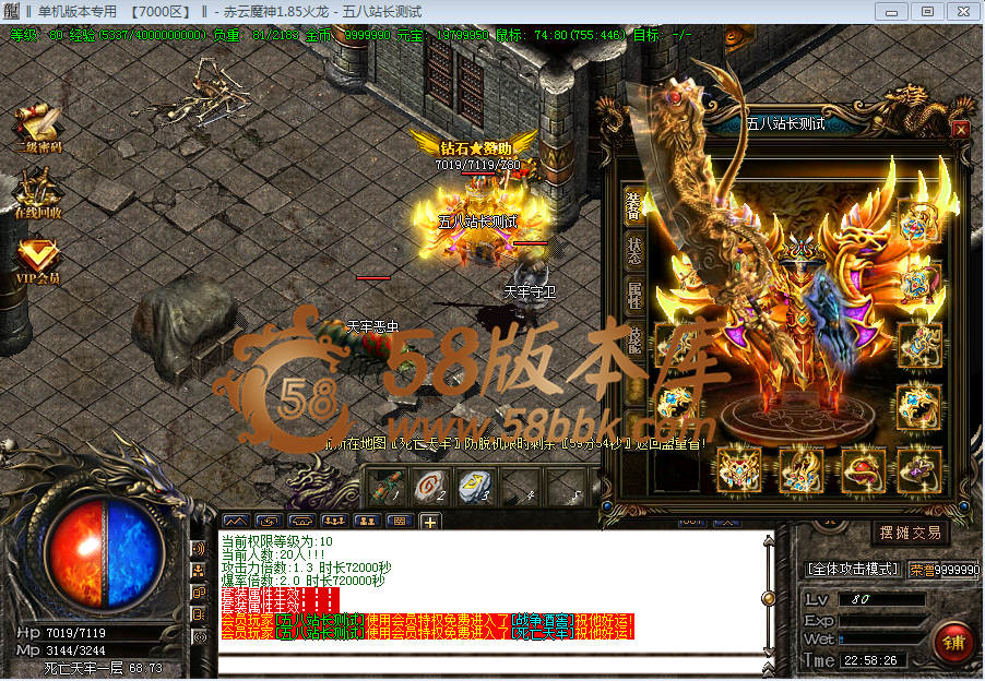 游戏介绍充值:10000 网银送100%,点卡送90% 本服一切只能靠打,无合成,一切只能靠爆出,消费低人气火爆