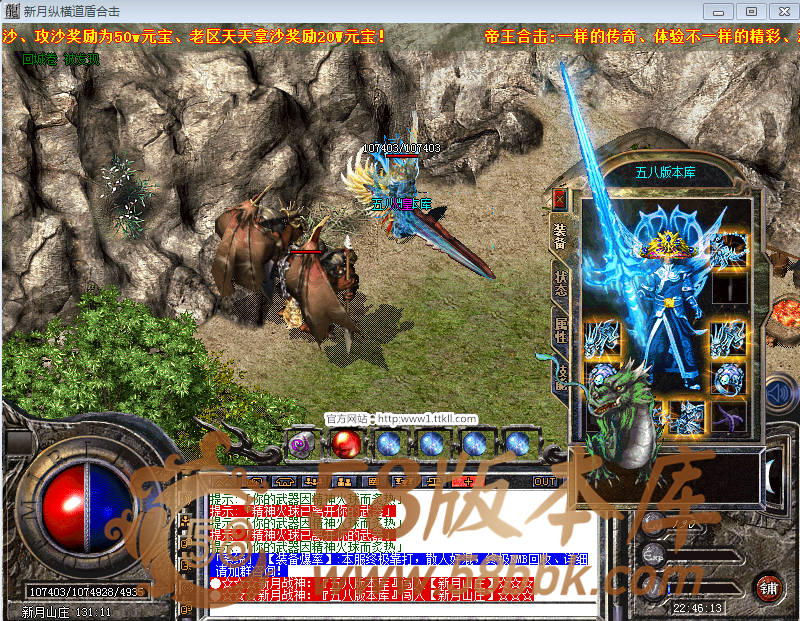 2017独家制作新月天裂合击,让你梦回08年!让我们追忆逝去的青春!。【攻沙介绍】:本服新区开放第三天攻沙、攻沙奖励为500w元宝、老区天天拿沙奖励200W元宝! 【关于装备】:战神-精灵-无敌-龙吟-逍遥-君临天下-天裂-追忆天裂-新月终极【装备爆率】:本服终极靠打,散人好混,终极米回收、详细请加群咨询! 【关于地图】:本服部分地图侧重于组队技巧性挑战.本服设有手动升级地图散人无限升级【关于补丁】:由于本服高级地图采用高清画质的真彩地图,装备华丽而不浮夸,故补丁较大【关于金刚石】:金刚石可以充值获得、或者打BOSS获得、BOSS可获得5-100颗金刚石! 【新手防骗】:游戏内出现的QQ全是骗子自己的QQ,切勿相信,否则受骗后果自负。 【充值警告】:官网是唯一的充值渠道,切勿受骗
