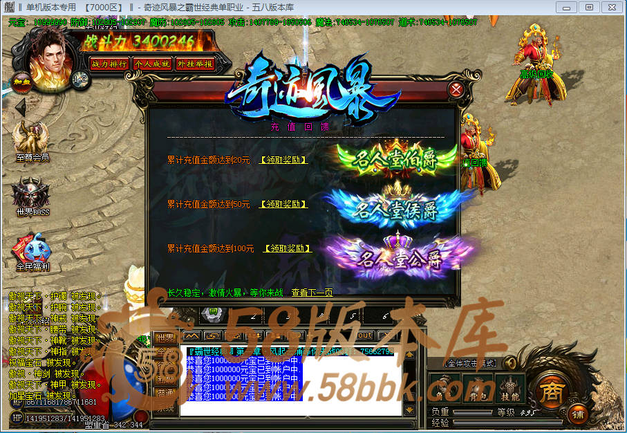 综合网银充值比例1:10000元宝,网银赠送100%,点卡赠送80%