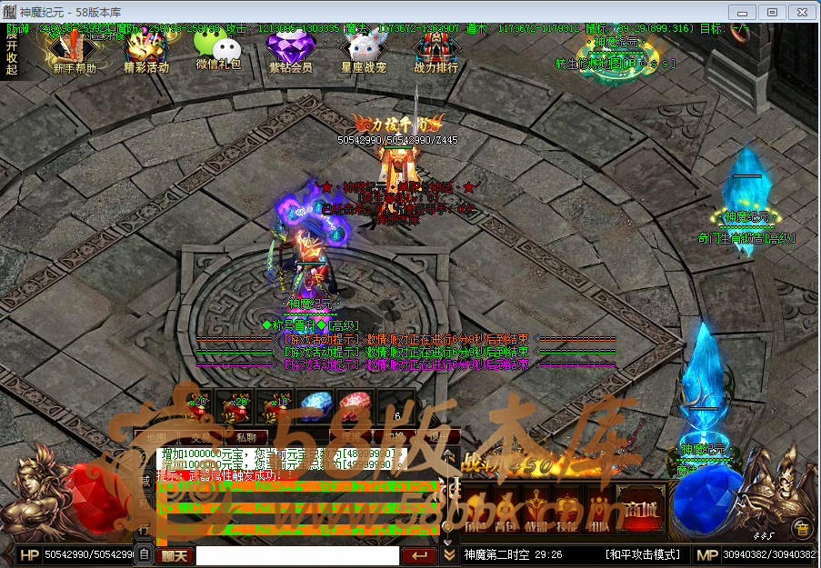 ③:非米玩家建议双开,一个泡级,一个打装备,土城正下方根据等级高低逐个进入地图,全服所有BOSS均有几率爆终极!