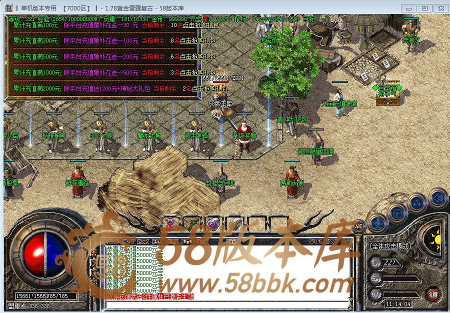 1.累计充值50+的土豪玩家,可以获得永久称号青铜赞助大使上线全服提醒【附加 青铜赞助斗笠 属性不变态】.
