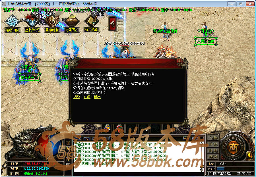 游戏介绍 西游币1:20000 充值点1:1 网银多送100% 点卡多送100%