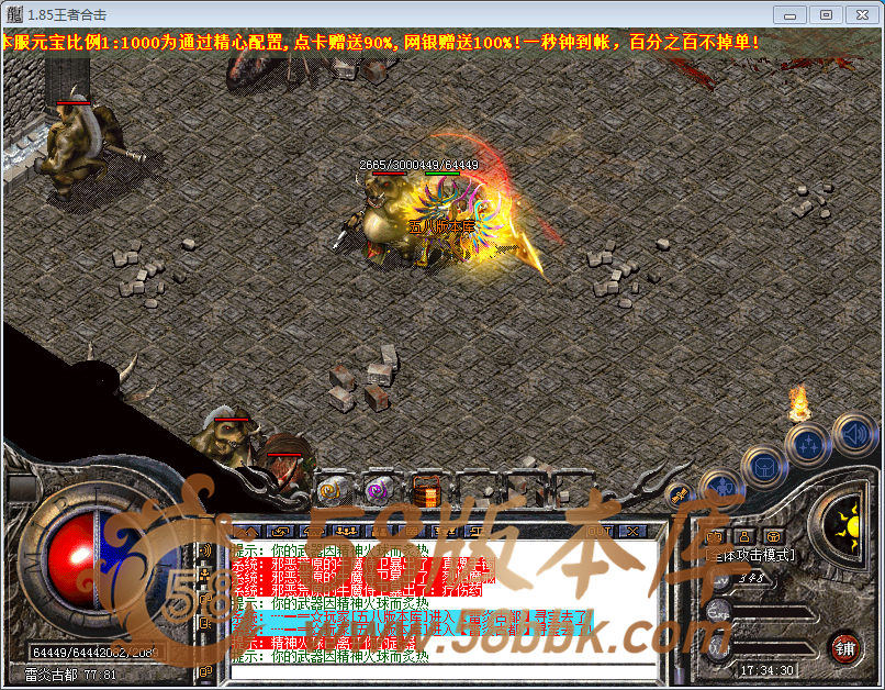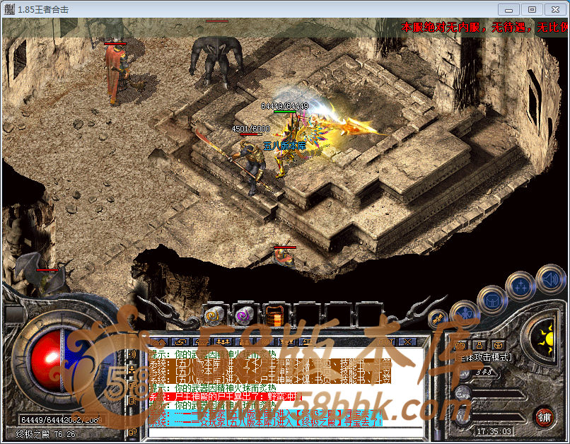 【版本介绍】:独家1.85散人合击版本,本服禁止使用外挂,发现永远封号!