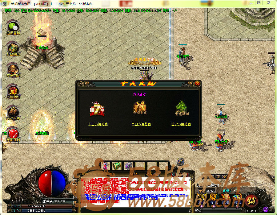 健康游戏忠告 抵制不良游戏 拒绝盗版游戏 注意自我保护 谨防受骗上当 适度游戏益脑 沉迷游戏伤身 合理安排时间 享受健康生活 火龙传奇管理员【新区公告】每日多区开放 区区重金广告推广 人气火爆 激情无限【元宝比例】元宝比例1:2000,网 银赠送100%,点卡赠送90%,多充多送,测试充值赠送20%【首沙奖励】新区开放第二天合区,第三天统一拿沙奖励128W元宝+200米充值卷 激情无限【新手起步】新人上线,到土城右上角领取新手礼包,获得运9武器奖励超爽超赞福利多多【全民夺宝】新区开放60分钟后,开启全民夺宝活动,地图爆出大量充值卷,散人超好混【血石圣心】血石,符文,斗笠,盾牌,可越级战斗,(本服无套装属性,斗笠爆击尤其重要【拒绝顶药】现在顶药外挂猖獗,本服无任何药品,回血全靠血石(上线免费送)【装备看脸】哪怕新手地图,也有一定几率暴出好的装备或者材料,拼人品的时候到了【封杀外挂】本服使用定制版云端封挂登陆器,封杀一切加速,脱机外挂,还原绿色游戏【游戏介绍】本服为纯散人打造,进服体验,半年不用在找服了欢迎来到2017年全国独家火爆·独家火龙版本本服激情耐玩,爆率平衡,装备保值。游戏采用最新高科技引擎,坚决封杀一切外挂(发现暗杀,外挂吃药,加速,脱机挂机),一律封IP机器码。本服所有装备均可在游戏中获得,越高级的装备暴率越低,但是绝对能暴,短期不能打到只是运气问题。激情多多,散人玩家不再寂寞.游戏体验本服无任何公司人员参与游戏人物红名后死亡爆率是正常的几倍,玩家注意道士55级召唤2只7级神兽60召唤2只1级强化神兽65级召唤2只7级强化神兽70级召唤2只1级白虎75级召唤2只7级白虎80级召唤2只7级强化白虎玩家快速练级方式可以去地下宫殿进行打怪升级,配合聚灵珠效果更佳,在使用一个经验倍数卷轴升级如做神七首次攻沙奖励元宝60万随机奖励九重技能符文一个,老区天天攻城奖励元宝20万