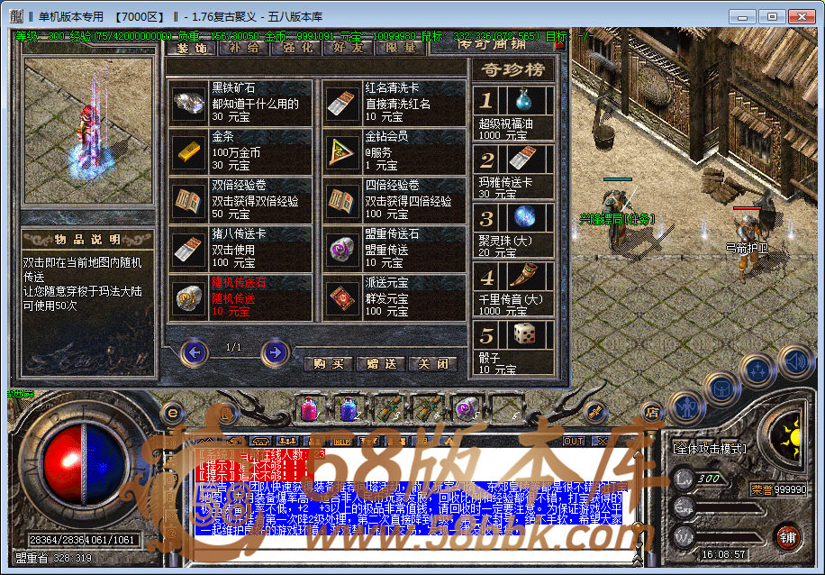 2.收普通玩家已存满的聚灵珠升级,这是本服最快速升级的方法。