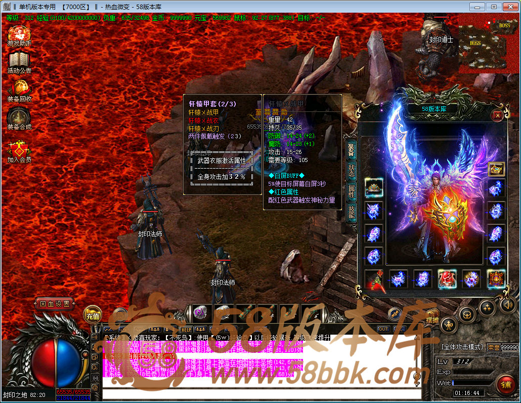 所有装备全部在游戏里获得,装备无合成,全靠打怪爆,真正做到长久公平合理,散人一样很牛逼很强大!