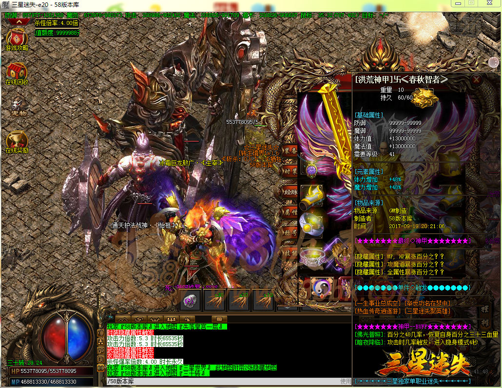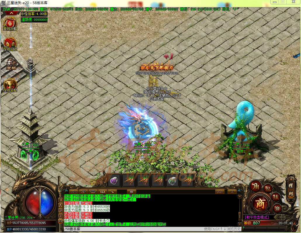 充值比例元宝1:100000 三星币1:500 网银多送100%!游戏介绍新手上线就送无限麻痹BB,送秒怪神器,前期不费劲!游戏介绍所有回馈散人都可以花时间获取!游戏介绍所有装备靠打,爆率全开,一切看脸游戏介绍开区第二天晚上拿沙,拿沙奖励丰富关于外挂封杀一切外挂 拖机 加速 不警告 不公告!