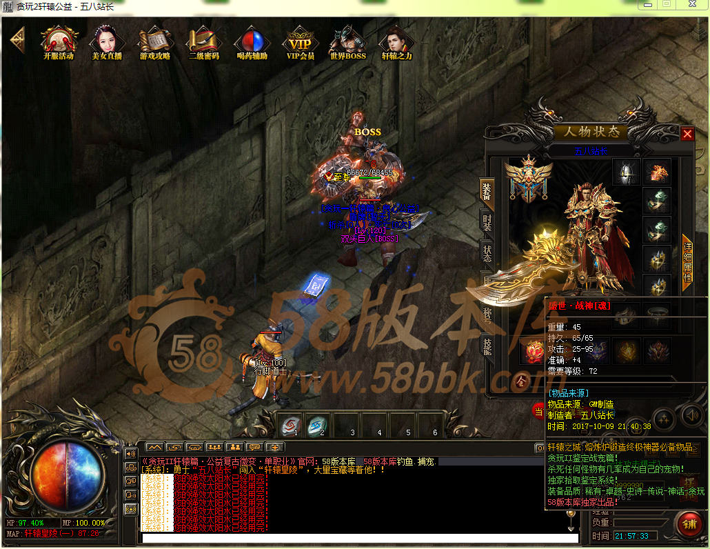 本服装备和元宝全部靠打!不出售任何元宝,打到的装备和元宝玩家之间自己交易!