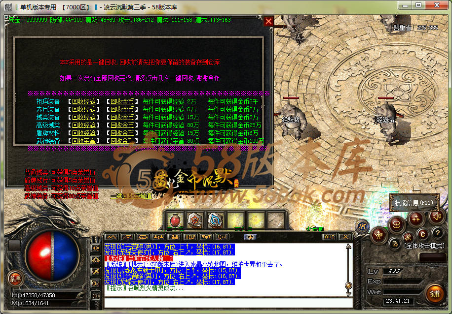 本服增加两种级别合成NPC,需要消耗一定金币及荣誉值!本服荣誉值只能依靠装备回收获得,后期相当重要!注:增加合成不代表装备不爆,只是适当照顾上班没时间玩家!本服承诺任何装备都有爆出!
