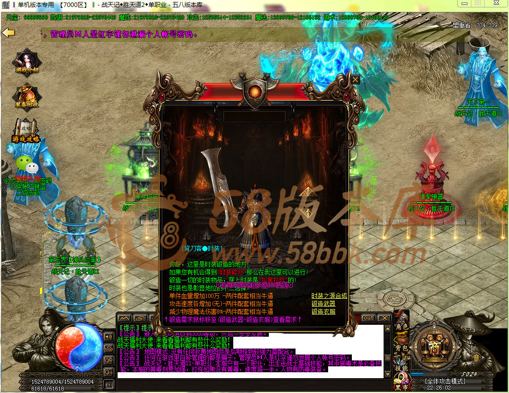 游戏介绍:帐号密码必须数字+字母.防止被扫号.切记游戏中不要接收陌生玩家外挂.很多都绑定木马,被盗自负!