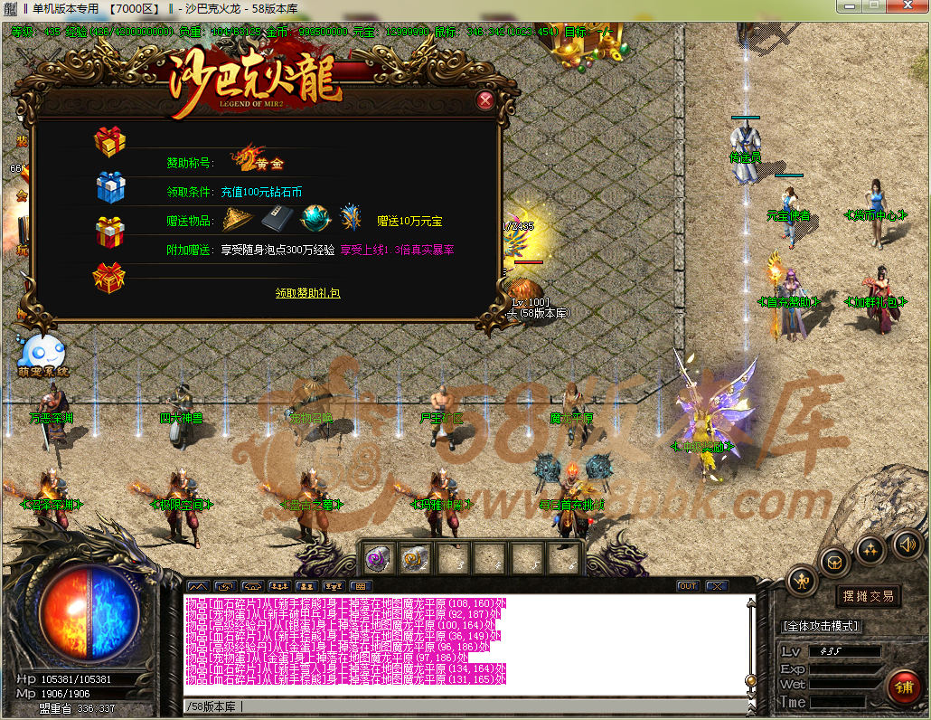 沙巴克火龙复古,三职业,无特戒,无秒杀,百分百封杀一切外挂!