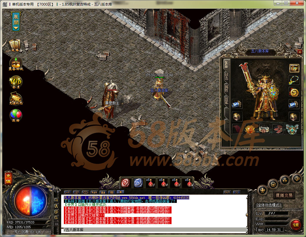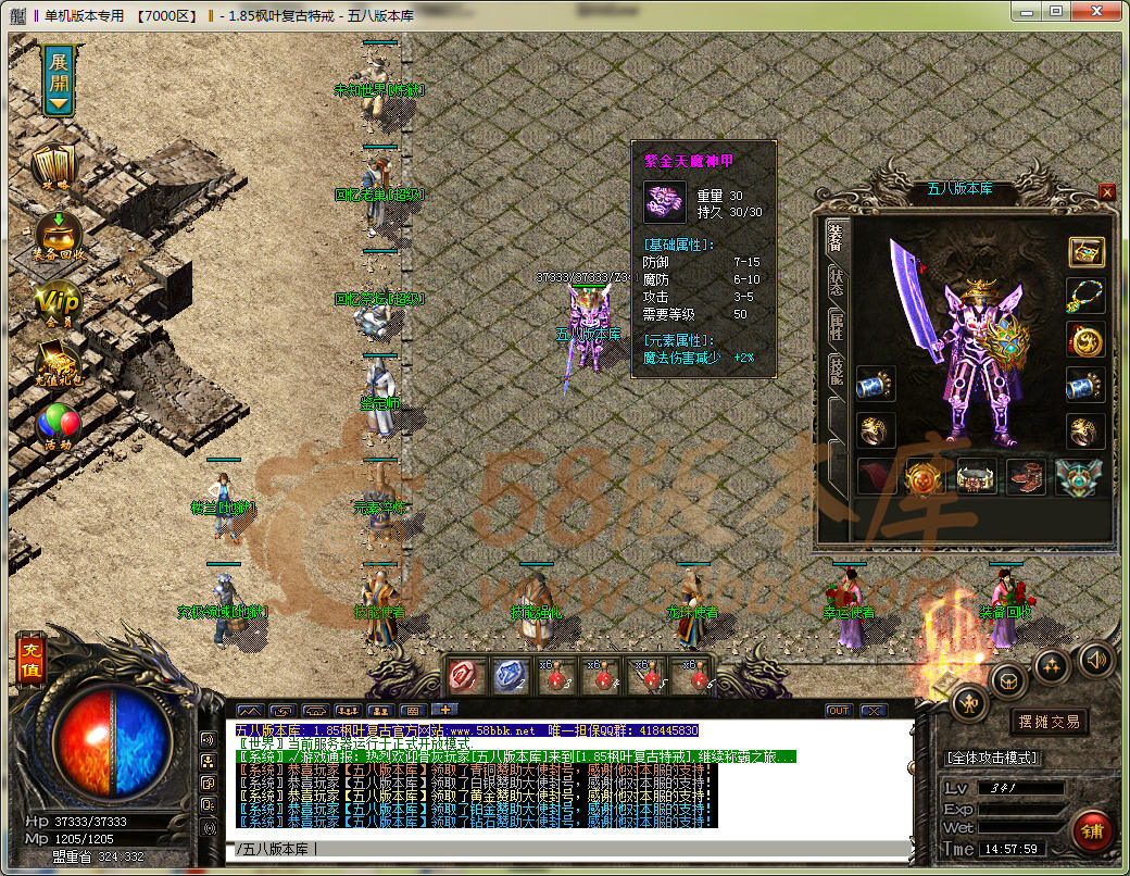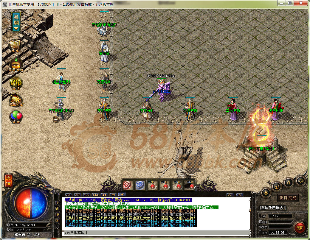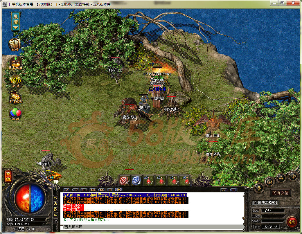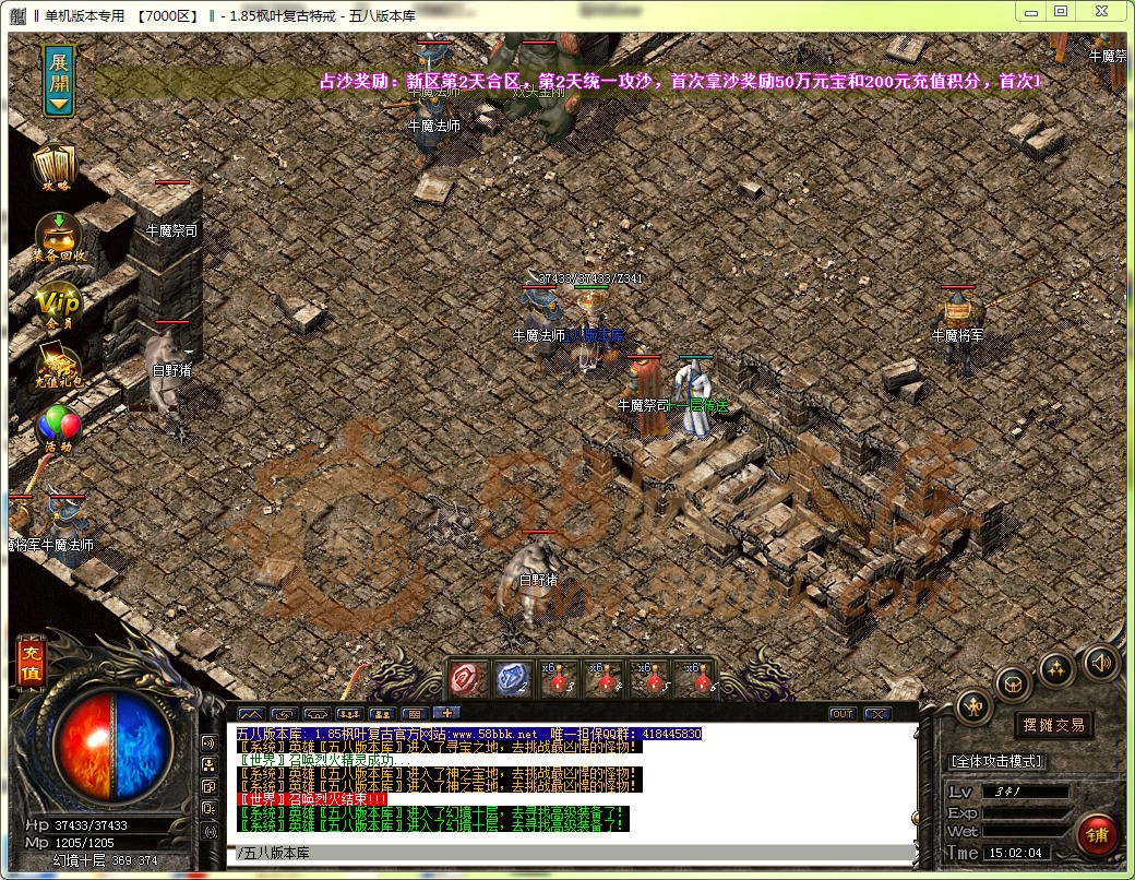 【版本介绍】:法师46级招勇士,50级招大锤,53级招变异巨型多角虫,56级招变异勇士,法师58级招锤神,配合道士碾压所有BOSS!