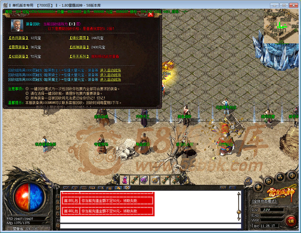 打造最激情耐玩的传奇!元宝比例:1:1000,网银多送100%!