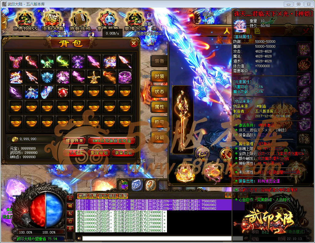 介绍本服所有装备、材料都可以爆出,无合成,为散人给予鼓励发展!